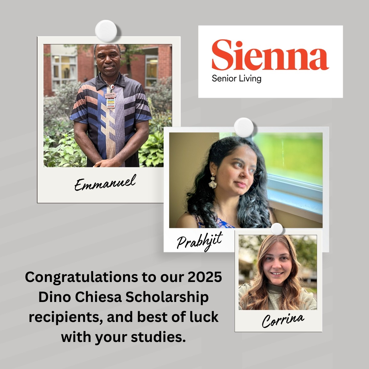 Financial costs to pursue a career in this field can be a barrier to pursuing this passion for some. The Sienna Senior Living Dino Chiesa Scholarship is awarded annually and can help to alleviate those costs.